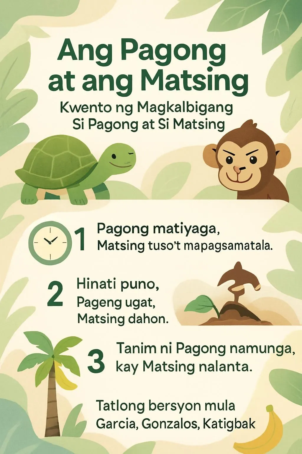 Maraming mga estudyante at guro ang hindi alam na ang kwentong “Ang Pagong at ang Matsing” ay hindi lamang simpleng alamat — isa itong mahalagang akdang pampanitikan na nagtuturo ng malalim na aral tungkol sa pagkakaibigan at katapatan. Si Pagong naman ay kinakatawan ang mga taong matulungin at mabait, samantalang si Matsing ay sumisimbolo sa mga taong tuso at makasarili. Ang puno ng saging na kanilang pinaghatian ay nagiging sentro ng kanilang pagkakaibigan at pagkakaaway, na nagtuturo sa atin kung paano ang tamang pakikipagkapwa.