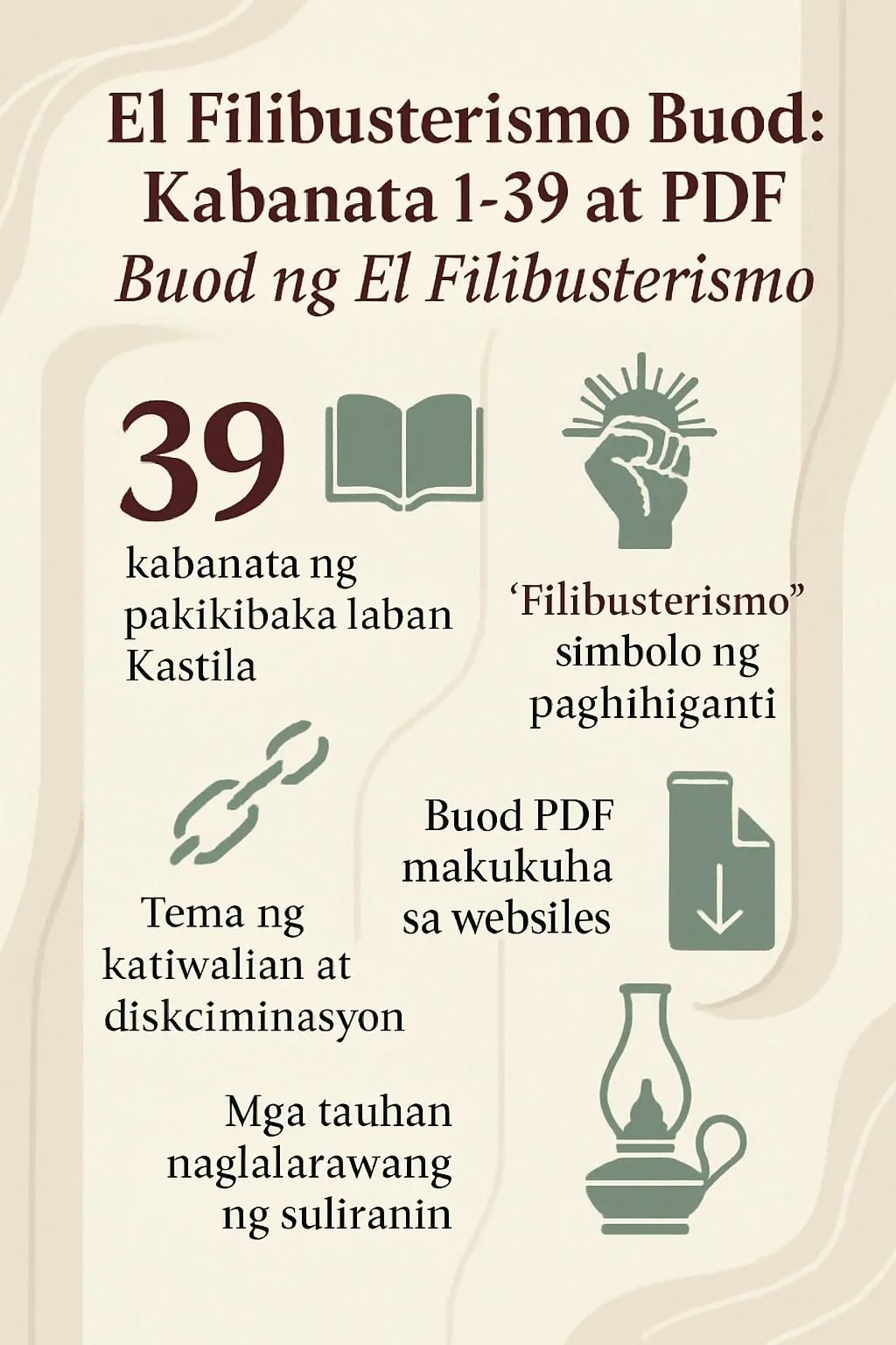 - Mga estudyante ay makakakuha ng PDF ng buod sa pinoycollection.com/el-filibusterismo-buod/ at iba pang mapagkakatiwalaang educational websites.